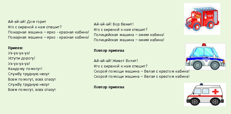 Многим детям известны песенки из популярного музыкального шоу «Кукутики». Оно был создан для дошколят, которые только начинают познавать мир и носит обучающий характер. В песенке, представленной ниже, дети поют про самые важные служебные машины, о которых должен знать ребенок.