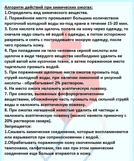 Оказание ПМП при ожогах сводится к выполнению следующего алгоритма действий: