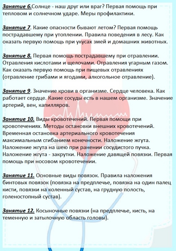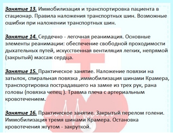 В ходе обучения все участники курса получают базовые знания о ПМП пострадавшим при различных несчастных случаях, а также в случае заболевания, угрожающего здоровью.