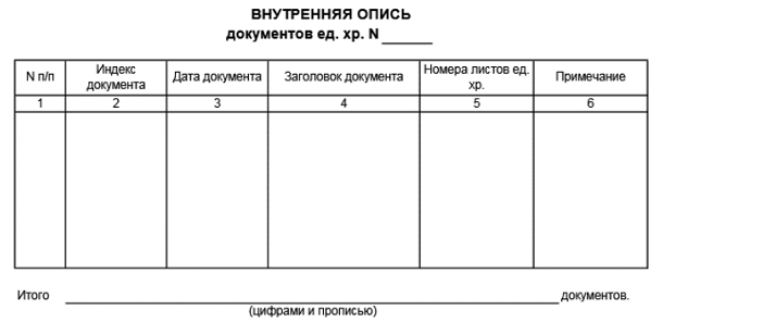 Следует обратить внимание на то, что нумеровать лист описи не нужно.