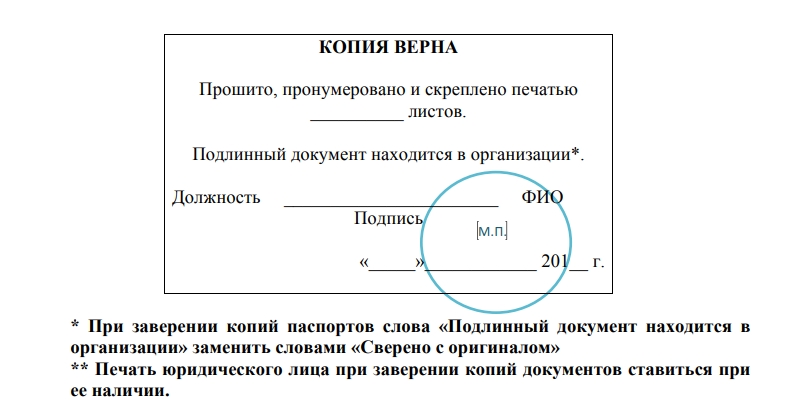 2. Поставить штамп «Верно» или «Копия верна» (можно написать от руки).