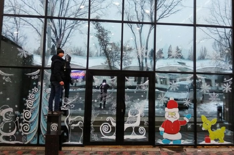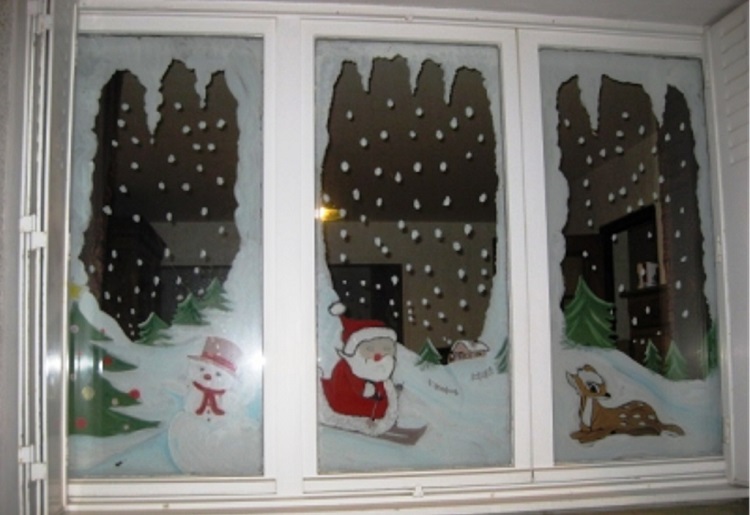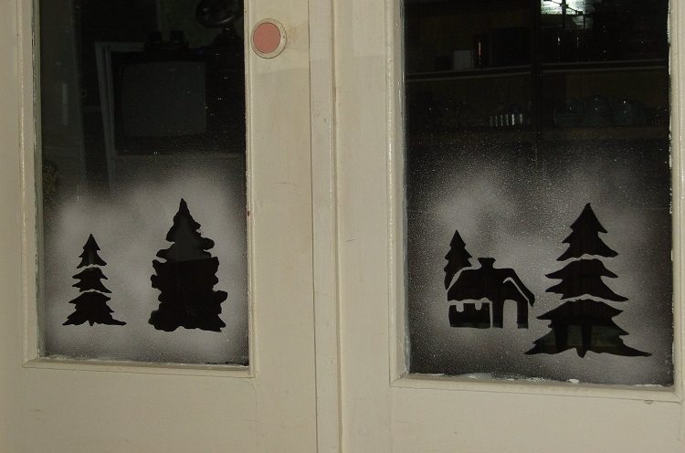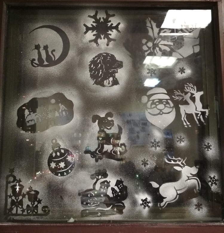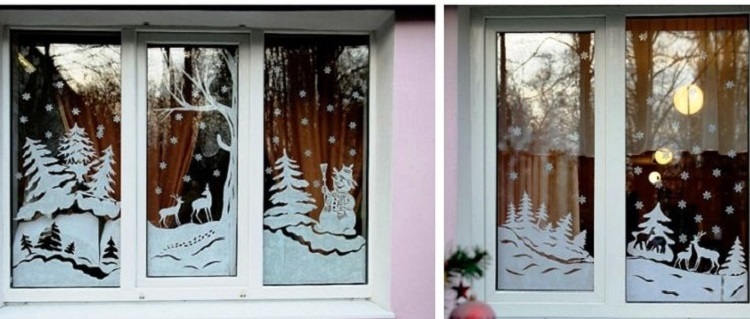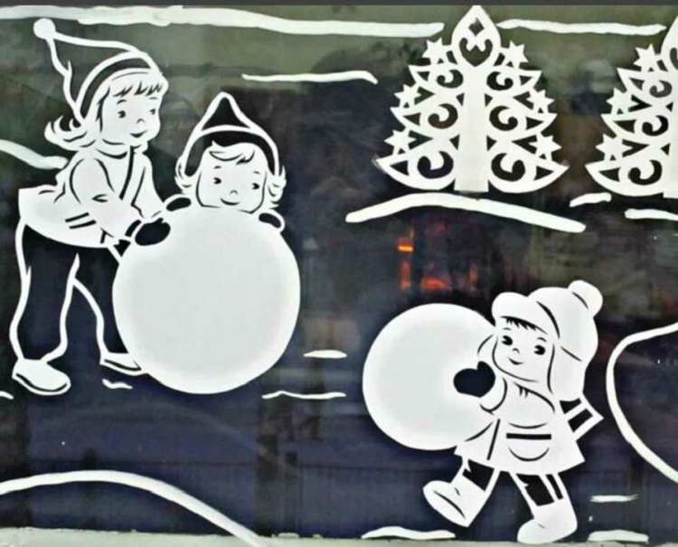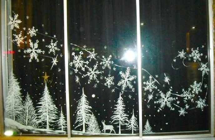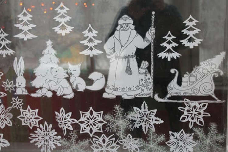 Новогодние картинки на окнах: