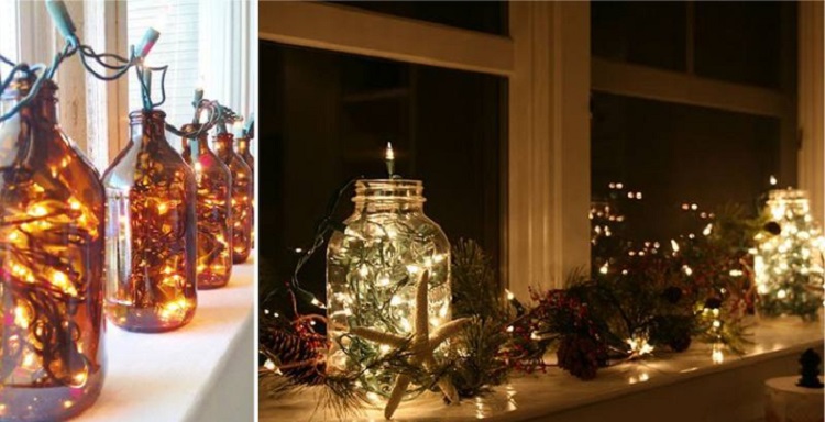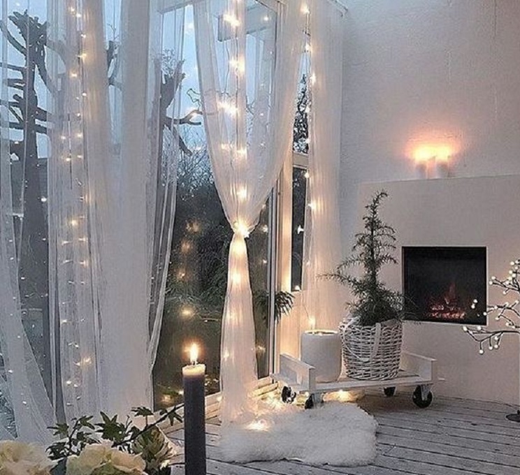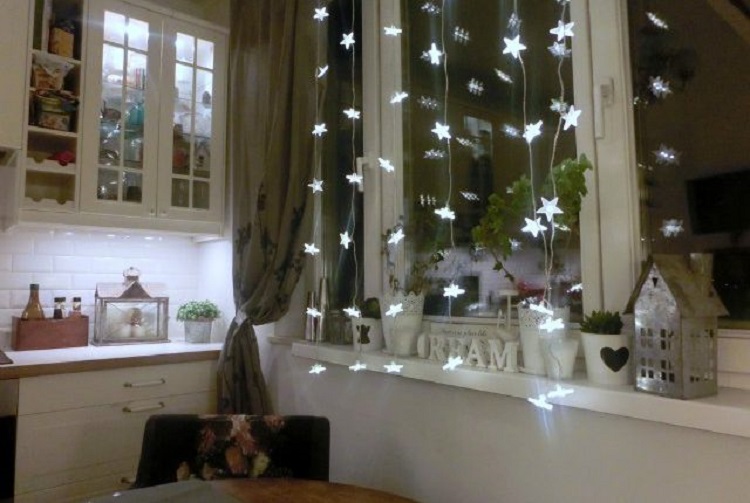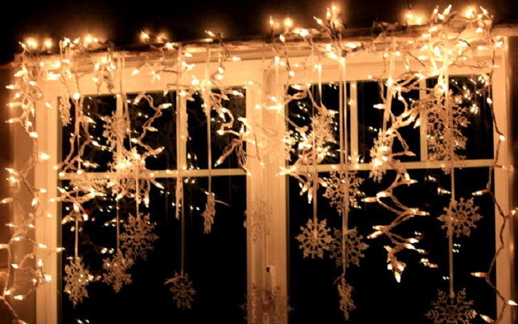 Интересные решения с оформлением окон гирляндами