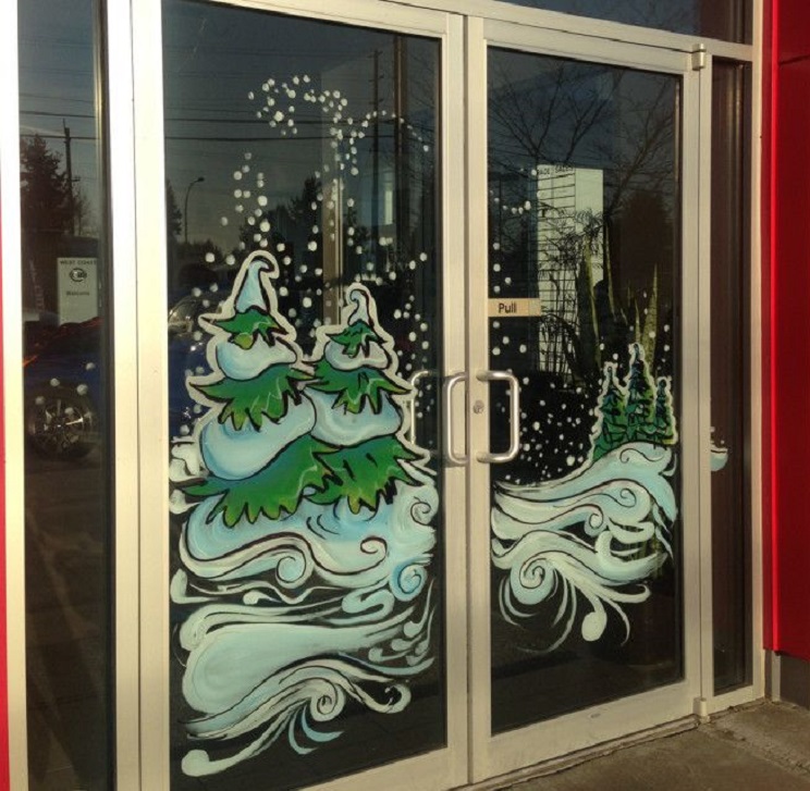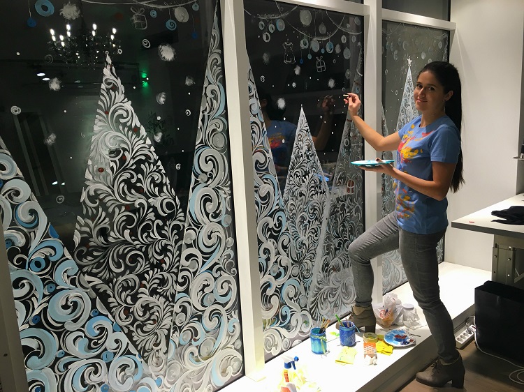 Для оформления витрин приглашают художников. Как правило, в оформлении витрин не используют шаблонов, трафаретов. Все рисунки выполнены от руки, краской и кистью, без вспомогательных материалов.