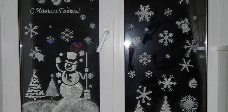 Новогодние рисунки на окнах
