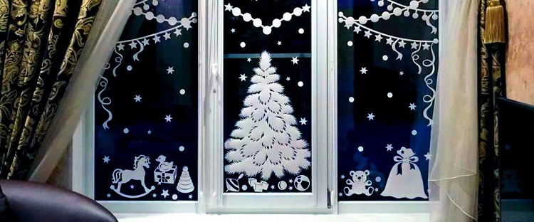 Новый год украшение окон в доме: идеи с фото