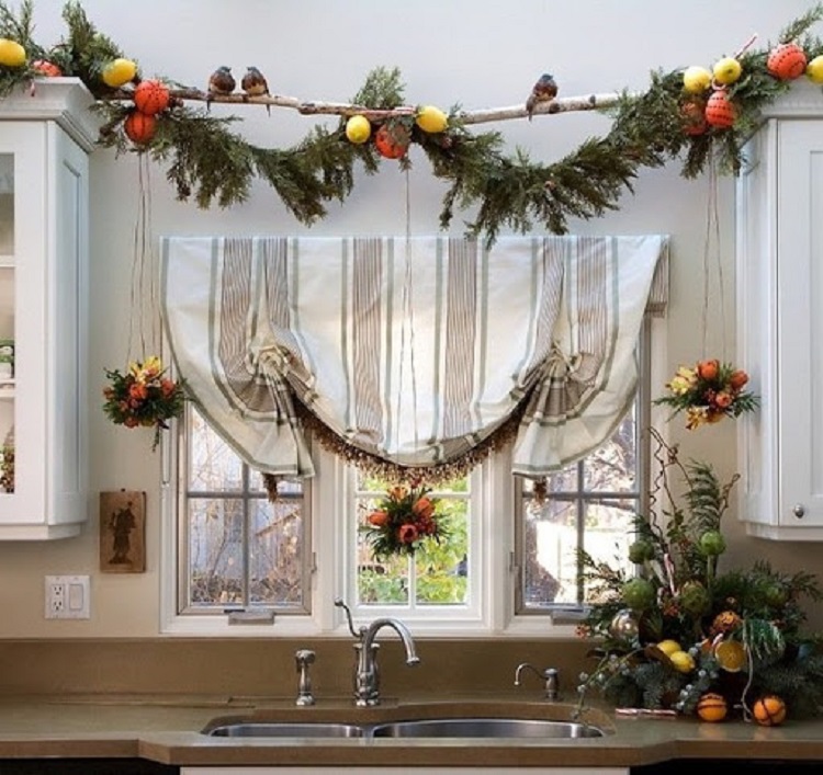 Окна занимают значимую часть помещения. Они находятся на втором месте после ели. Яркий декор на оконных проемах дарит ощущение радости и душевного спокойствия.