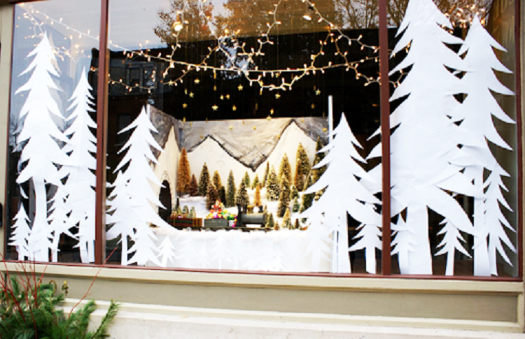Украшения витрин Новый год: идеи с фото
