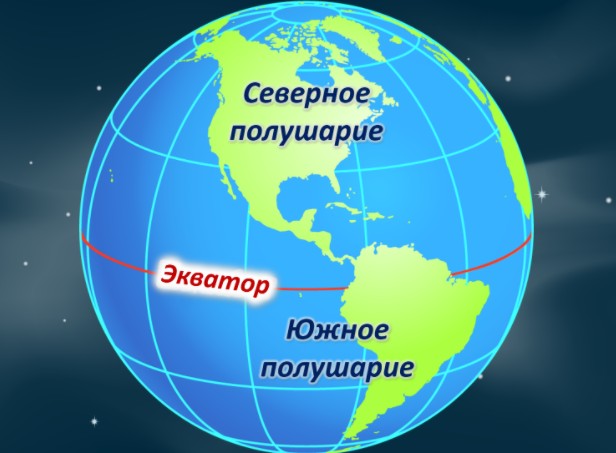 Условная линия, перпендикулярная оси вращения, это и есть Экватор. Он делит Земной шар ровно на две половины и проходит через его центр. Так же, эта линия делит Землю на полушария, одно из них Южное, а другое — Северное, одинаково от них удален и является очень важным ориентиром для навигации. Так как, наша планета не имеет строгую форму шара, обозначая Экватор, ученые договорились об условном его обозначении в виде окружности, радиус которой равен радиусу Земли и составляет 40 075 698 километров, с небольшой погрешностью.