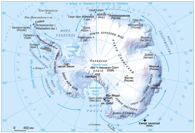 Полностью находятся в полушарии Южном только 2 материка, это Австралия и Антарктида. Частично — Южная Америка и Африка. Всего 19% полушария занимает суша, на остальной территории — водная поверхность, к которой относятся океаны Южный, Тихий и Атлантический, поэтому его называют океаническим.