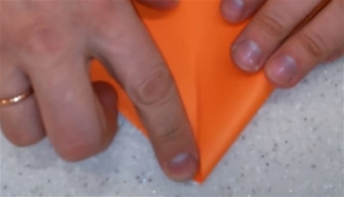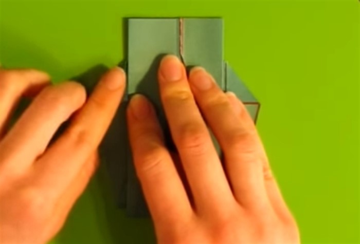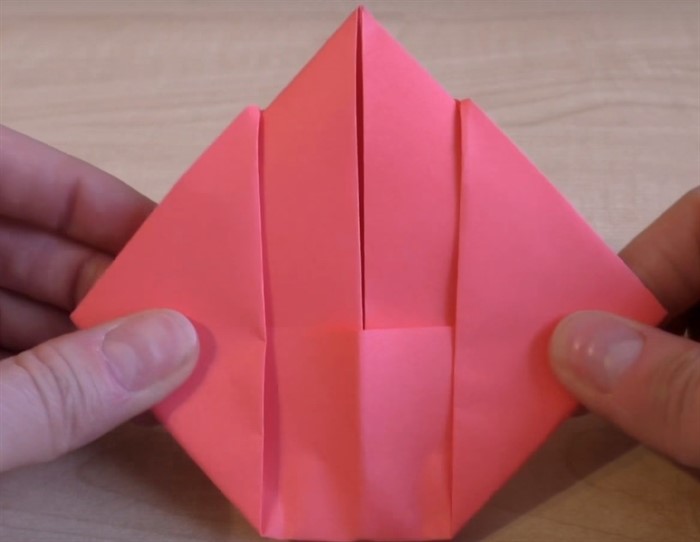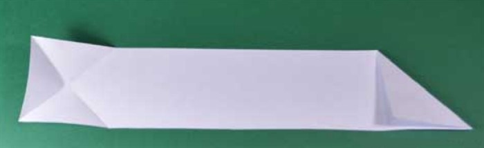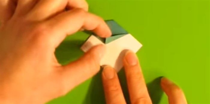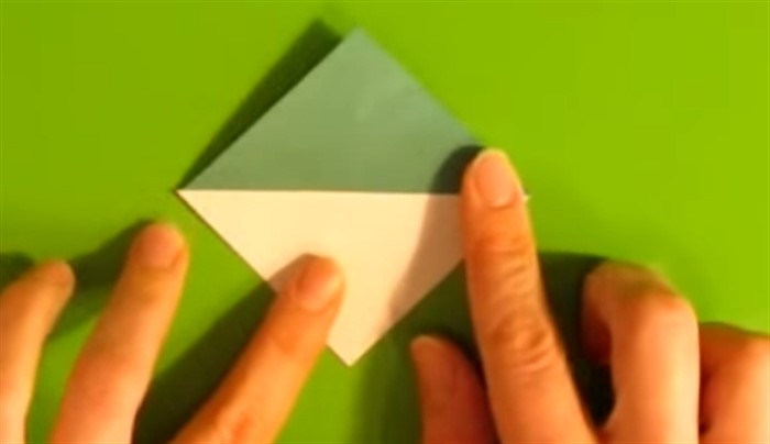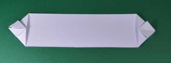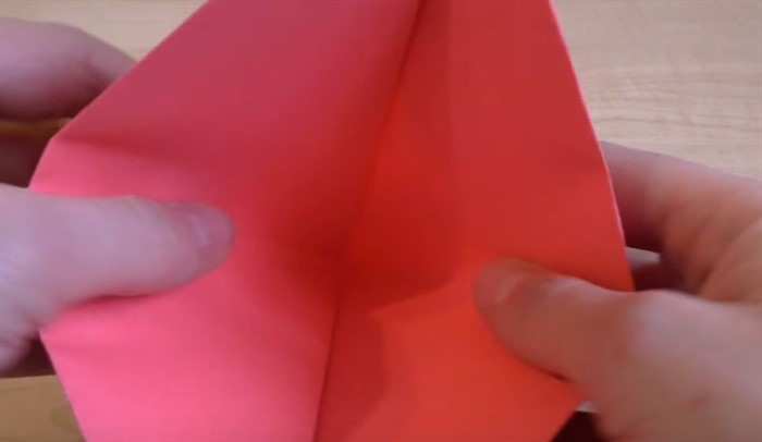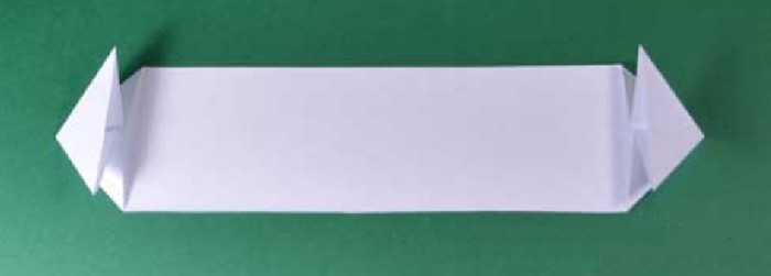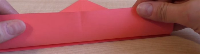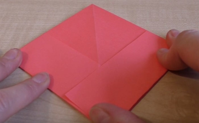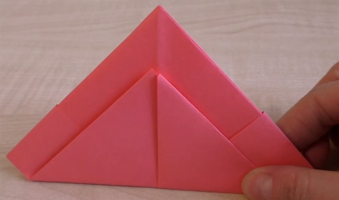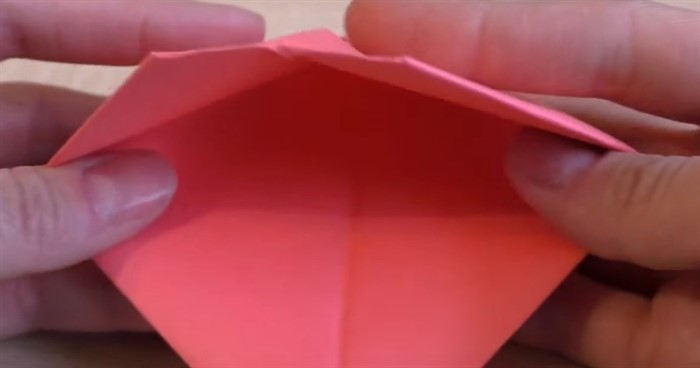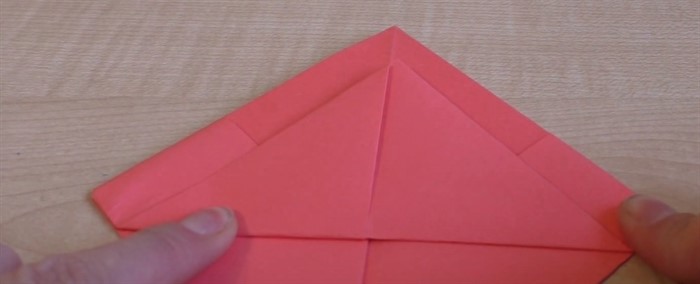 Сначала правый, а затем и левый верхний углы прямоугольника загните к центру.