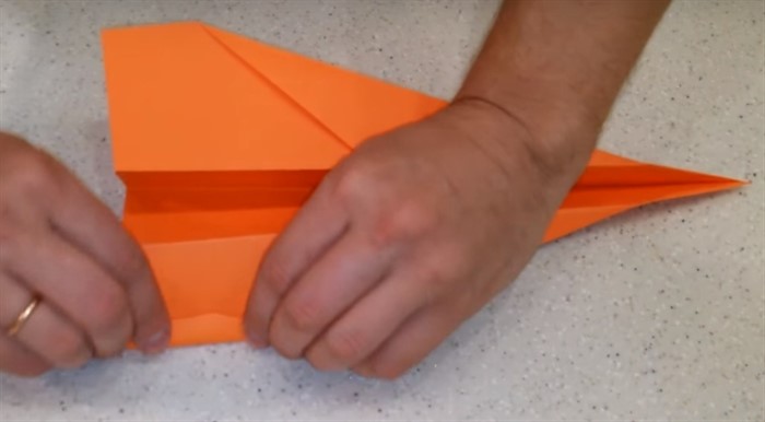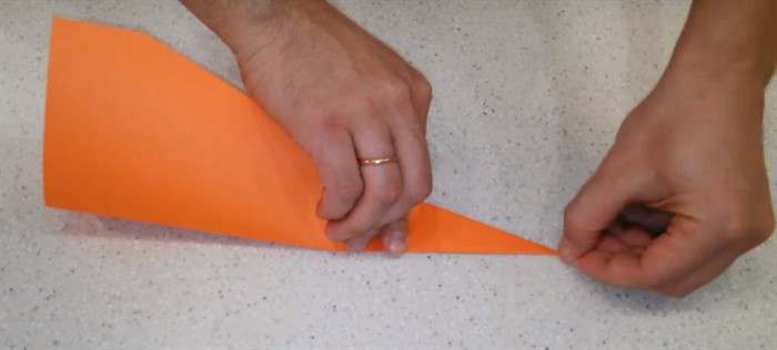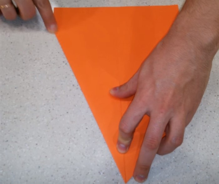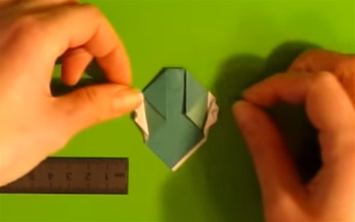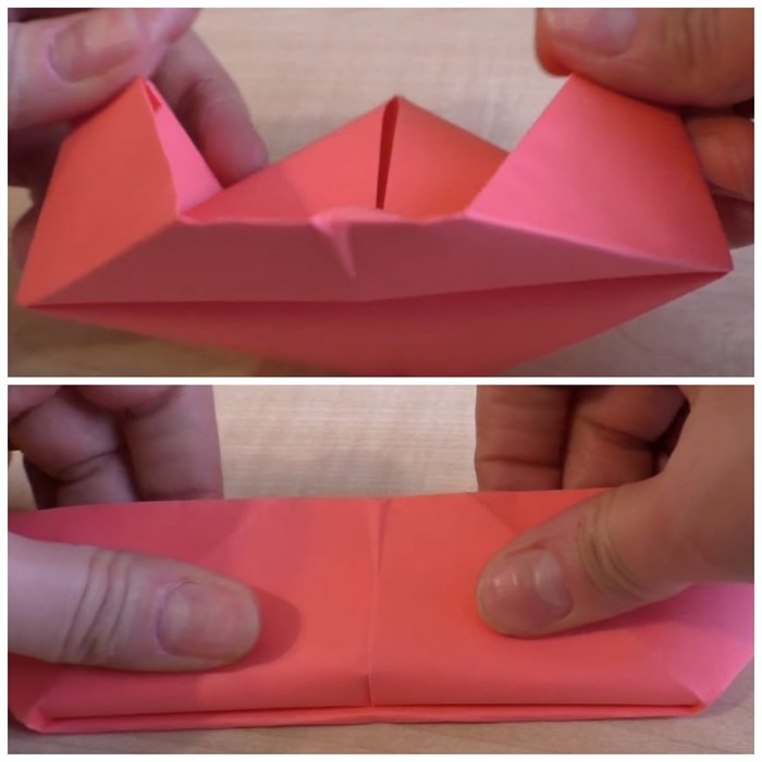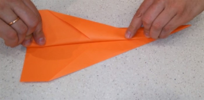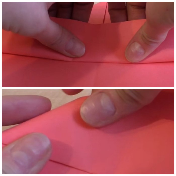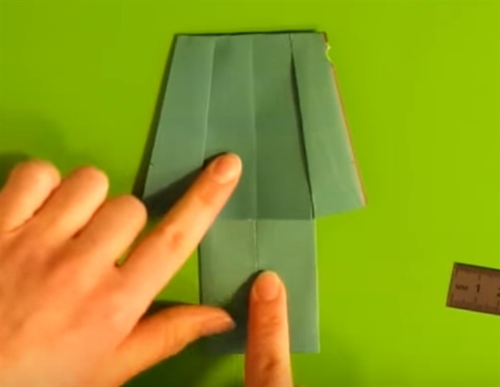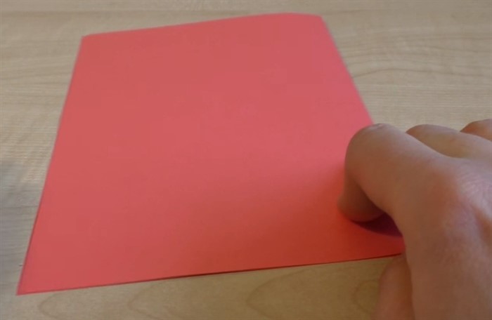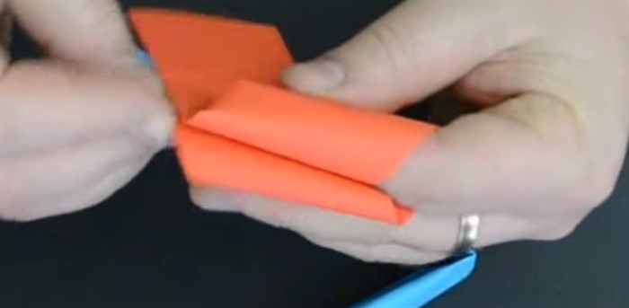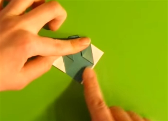 Сначала правый, а затем и левый верхний углы прямоугольника загните к центру.