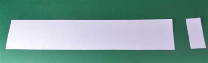 Лист формата А4 согните пополам по длинной его стороне, разрежьте по линии загиба. Одну часть отложите в сторону, она не потребуется. От края широкой стороны отрежьте кусок длиной равный краю стороны и шириной 1 см.