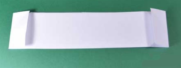 На большем прямоугольном куске бумаги загибаем оба угла с обеих узких сторон по диагонали сначала с одной, а затем и со второй стороны.
