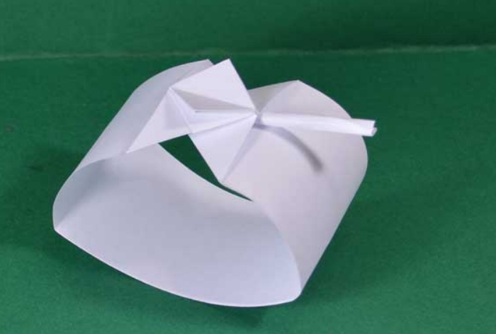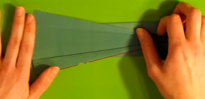 Переворачиваем заготовку. Узкие стороны загибаем вверх, а концы вкладываем друг в друга.