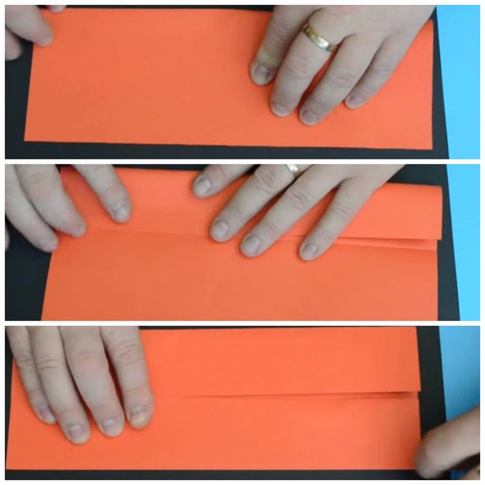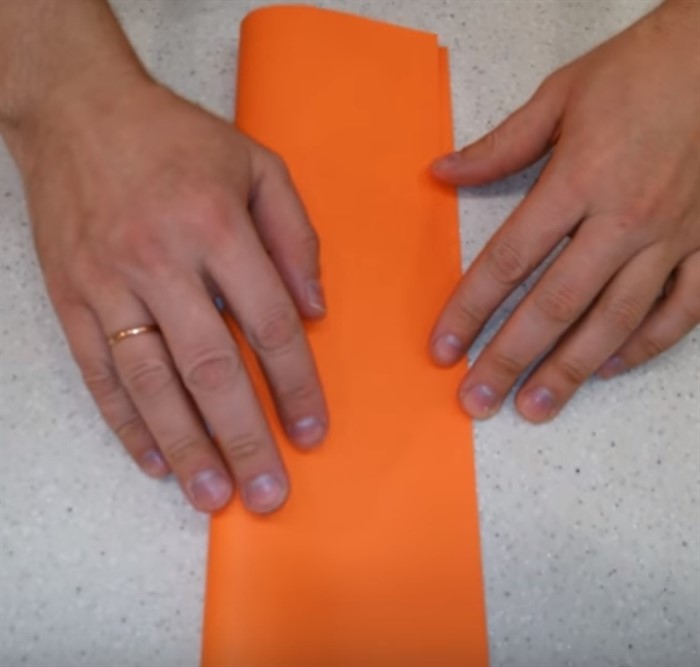 Полученную полоску согните пополам по ширине. Отложите в сторону.