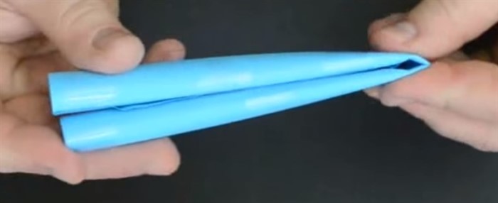Конец крыльев самолета загибаем примерно на 1 см в средину.