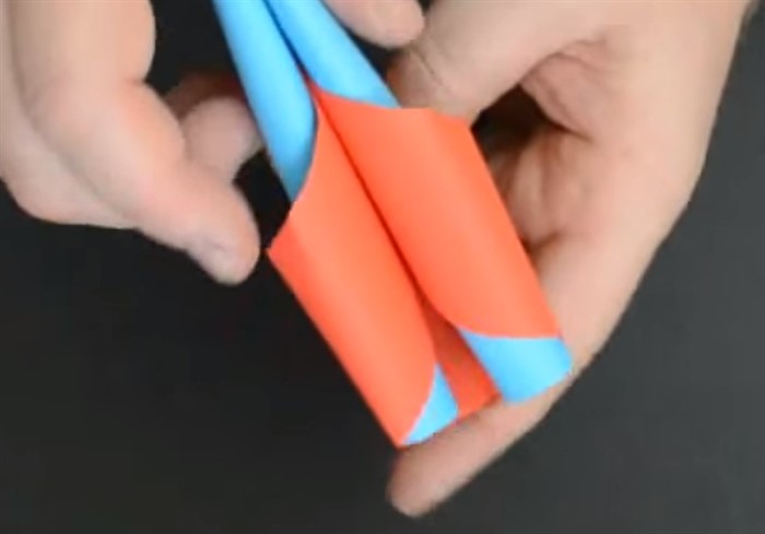 Из второго листа скрутите трубочку по длинной стороне, края зафиксируйте скотчем.