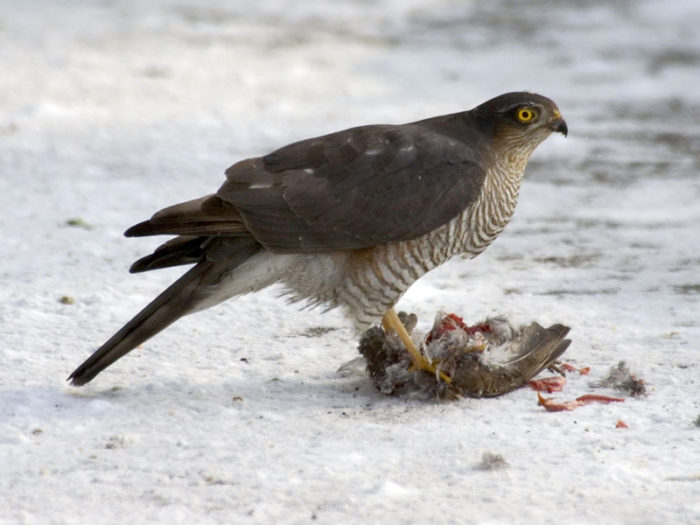 Ближе к зиме многие птицы из леса обустраиваются возле человеческого жилья, чтобы обеспечить себя едой.