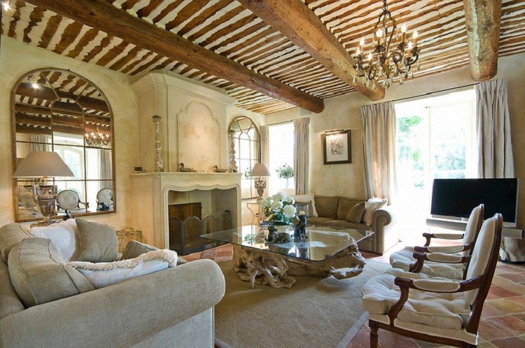 Деревянный потолок. Несущие балки выполняют роль декоративных элементов.