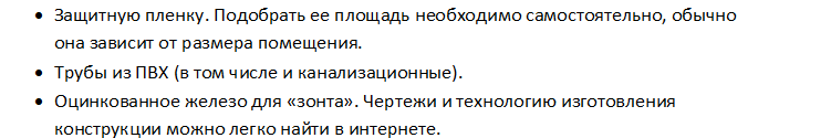 Во время проведения строительных работ монтируется вентиляционная система, состоит она из труб ПВХ. Установить ее можно и во время ремонтных работ, впоследствии она прячется под потолочной конструкцией.