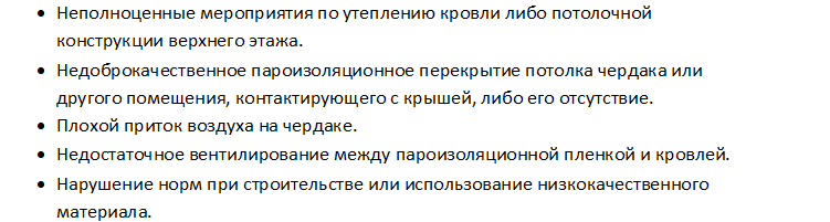 Среди причин, ведущих к образованию конденсата, выделяют: