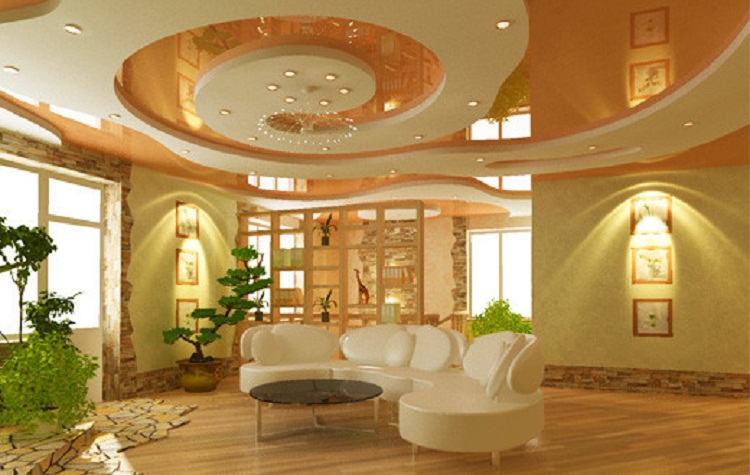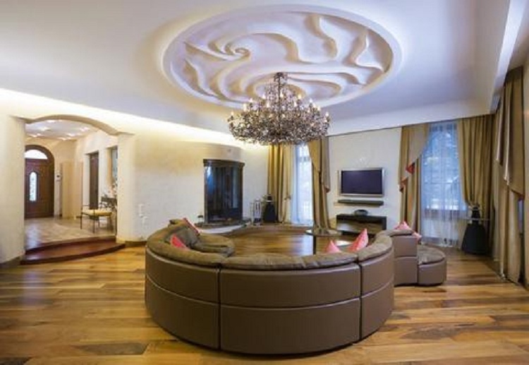 Особого внимания заслуживают потолки в гостиной комнате частного дома. Ведь именно в ней собираются гости, дизайн комнаты должен создавать уют. Для выбора дизайна пересматривают множество журналов, видео роликов. Часто потолки в гостиных украшают лепниной, декором. От высоты потолка в этой комнате зависит выбор материалов, вид планируемых работ.