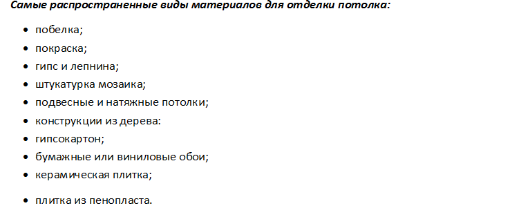 При условии проживания в доме только в теплое время года подбирают панели из пластика, вагонку. Ей не страшны перепады температур в неотапливаемое время. Такой материал как гипсокартон, деревянная вагонка, обои, покраска, боятся сырости. Их применяют только для домов, в которых живут круглый год.  Виниловый потолок из натяжной пленки не боится холодов, влаги, жары, поэтому он актуален для любых домов.