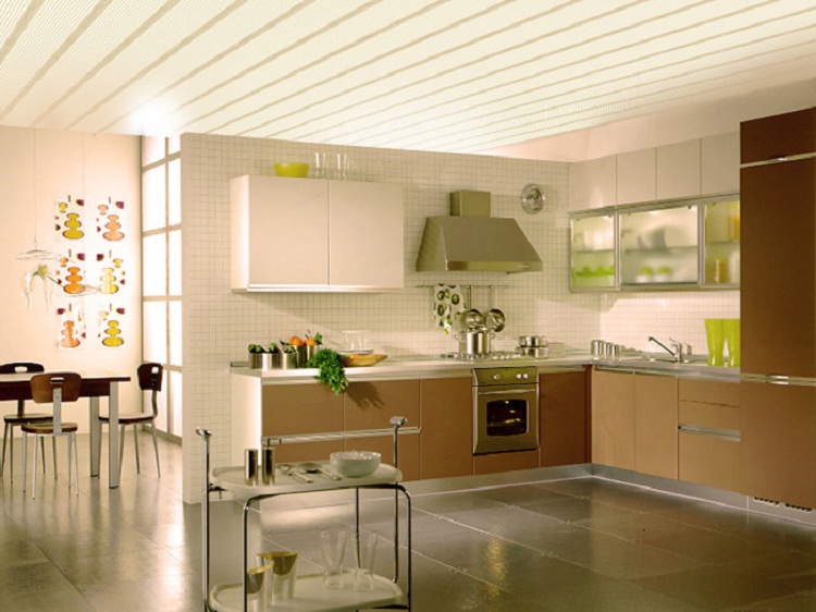 Кухня особенная и самая важная комната в доме. Именно поэтому к ее дизайну, мебели, потолкам относятся с должным вниманием. Потолок играет самую важную роль, с ним сочетают мебель, дизайн стен. Кухня одна из самых влажных комнат в доме. Воспарение во время приготовления пищи может негативно влиять на материалы потолка, привести к их искривлению. Именно поэтому материалы подбираются влагостойкие, в процессе эксплуатации они должны регулярно мыться.