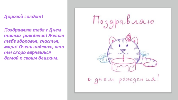 Несомненно, нашим солдатам, сражающимся сегодня на фронтах, будет приятно получить открытку-поздравление в День рождения.