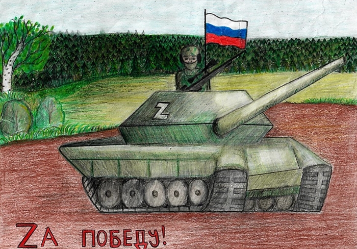 Буква «Z» рекомендована Министерством обороны, как отличительный знак на российской военной технике. Но, в народе она стала использоваться, как символ поддержки нашей армии. Ее можно изобразить на открытках на тему Победы, объяснив детям, значение.