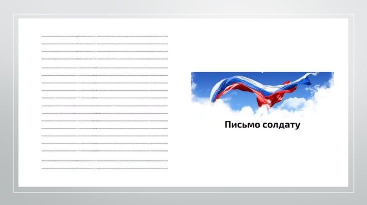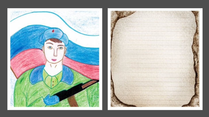 Так же, детям можно предложить нарисовать российские мирные пейзажи, а в текстовой части открытки выразить благодарность солдату-миротворцу, например, так:
