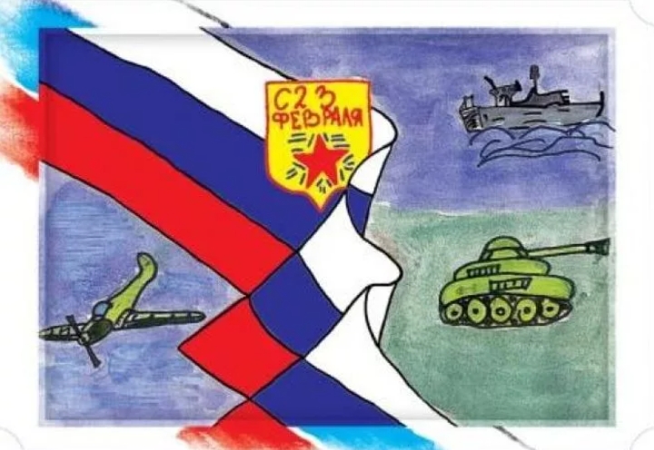 Пусть дети пофантазируют, что нарисовать на открытке солдату к празднику, это может быть военная техника, российский флаг, военная атрибутика, георгиевская ленточка