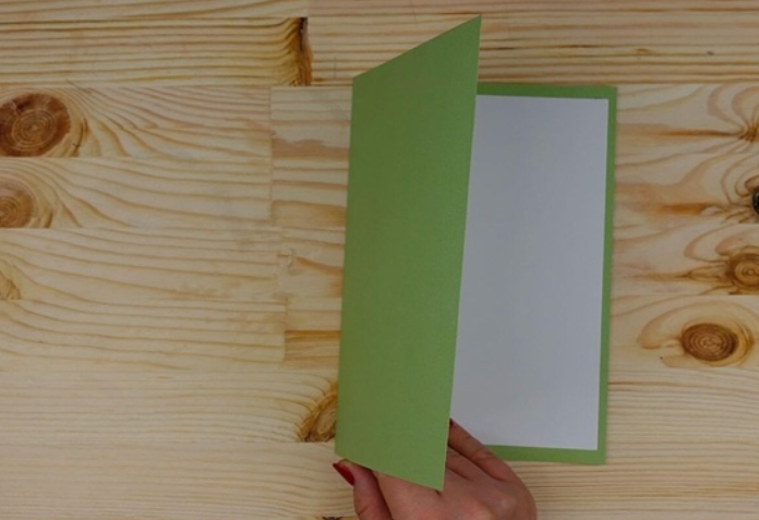 - Для основы открытки понадобится цветной лист бумаги, он сгибается ровно пополам.