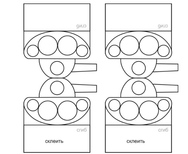 4. Приложите листы один к другому, вырезанные детали согните и в таком виде приклейте их друг к другу.