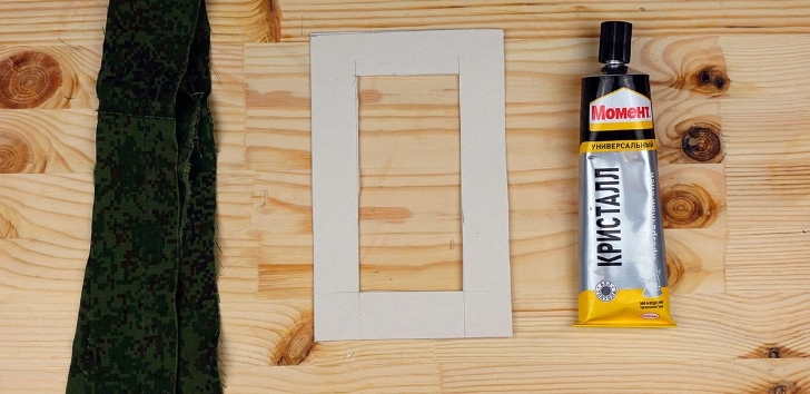 С помощью клеевого пистолета закрепите рамку на основе. Декорируйте по своему желанию. На развороте напишите текст — письмо солдату.
