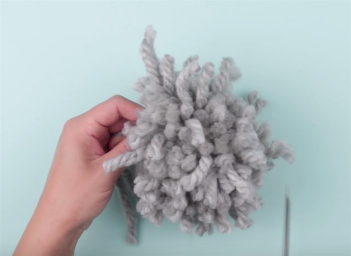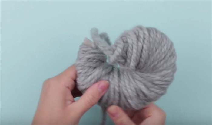 Зафиксируйте моток по центру нитью, после чего разрежьте по внешнему радиусу заготовку, не разрезав фиксирующую нить.