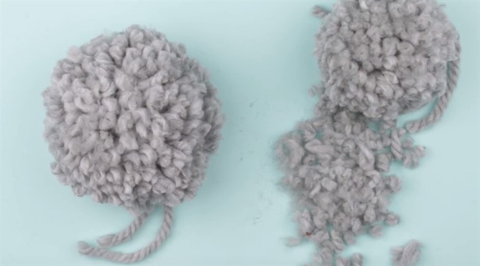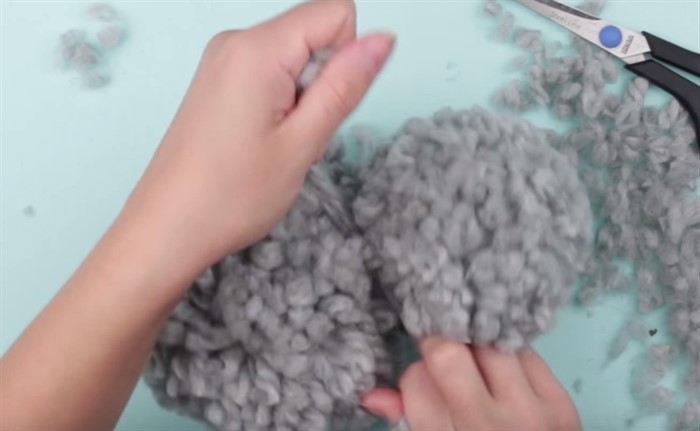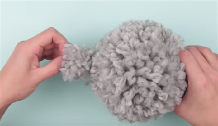 Сделайте помпон ровным, подрезав торчащие нитки. Сделайте еще один подобный помпон только меньшего размера.