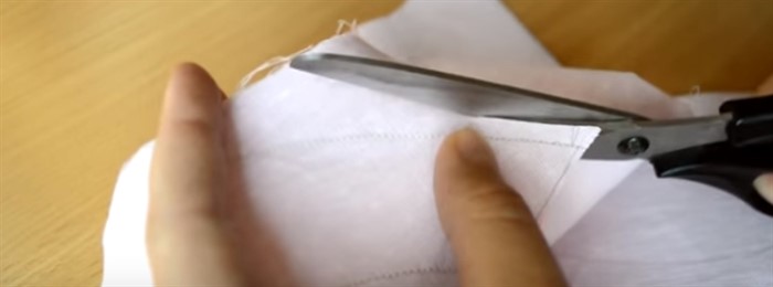 Каждую деталь закрепите дополнительно булавками, прострочите, оставляя для выворачивания линию, обозначенную на выкройках «Сгиб», а затем вырежьте, оставляя на припуски 1/2 сантиметра.
