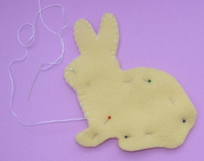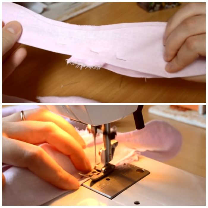 - Декоративным швом сшейте заготовки, оставьте отверстие.