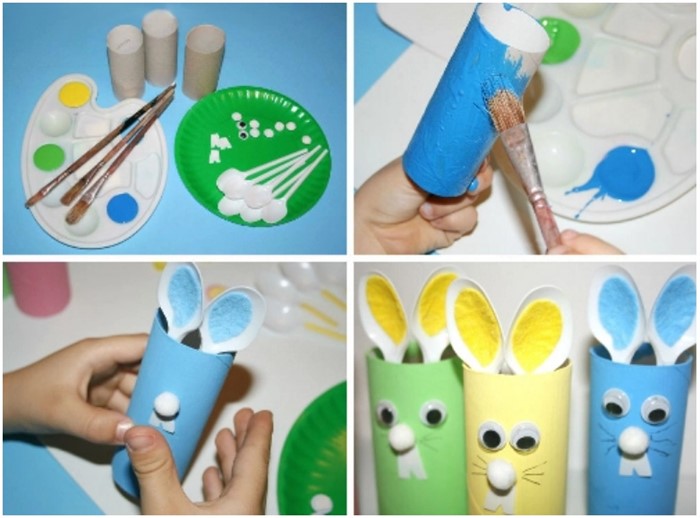 - В середину втулки к одной из боковушек приклейте 2 одноразовые ложки.