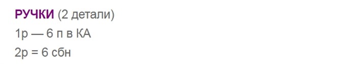 Ручки провяжите до желаемой длины, ориентируясь на размер тела. В последнем ряду, сложите деталь и провяжите 2 сбн за обе стороны.