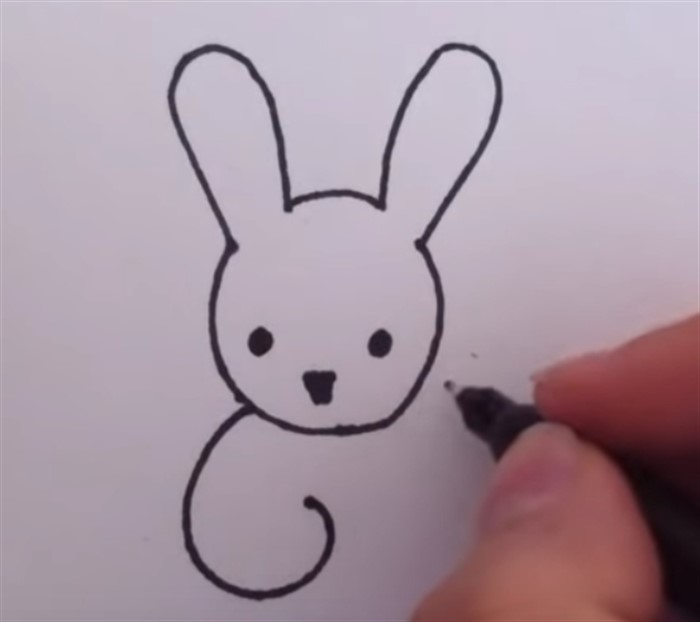 Под завитками прорисуйте волнами животик кролика, дорисуйте хвостик. Раскрасьте.