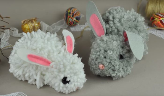 - Приклейте глазки-бусины и декоративные помпоны для хвостика и носика.