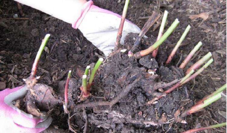 Если осенью не вышло пересадить, или разделить растение, то весной рекомендуется сделать это с приходом апрельского тепла, не позже 10 числа. При посадке делают углубления на пол метра, ширина ямки 50х50 см. В само углубление засыпают удобрения, дренаж, почву. Весь настил должен быть не больше 20 см. Спустя 4-5 дней можно проводить посадку куста. Полностью его не засыпают, оставляют 5-7 см стеблей на поверхности.