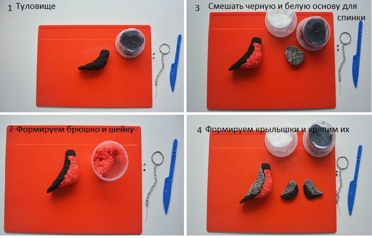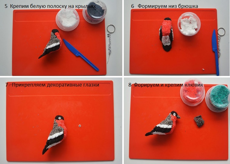 Снегирь из шариков пластилина