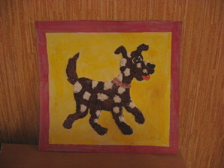Поделка из пластилина шариками на картоне, аппликация