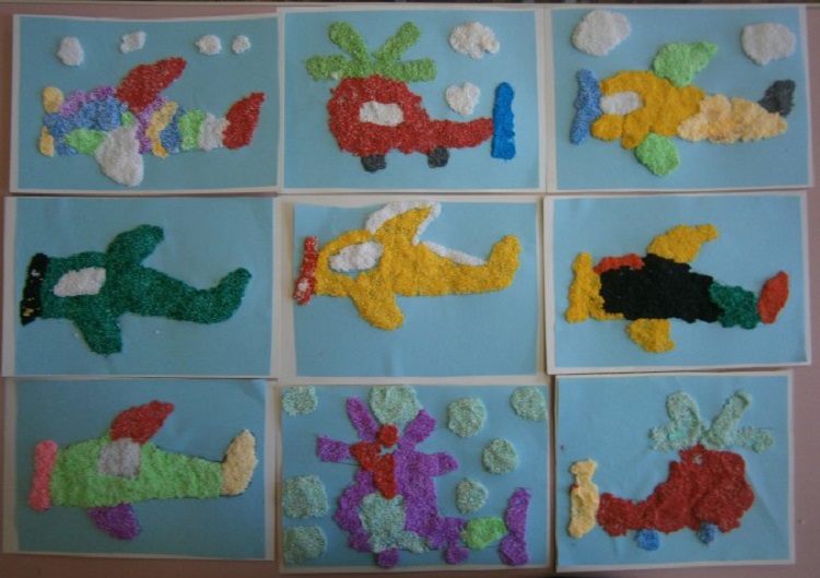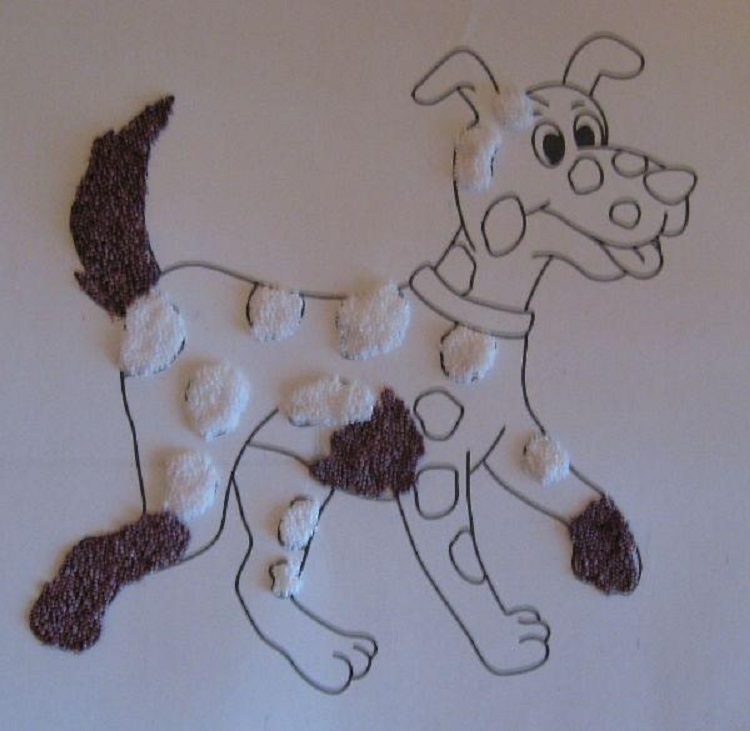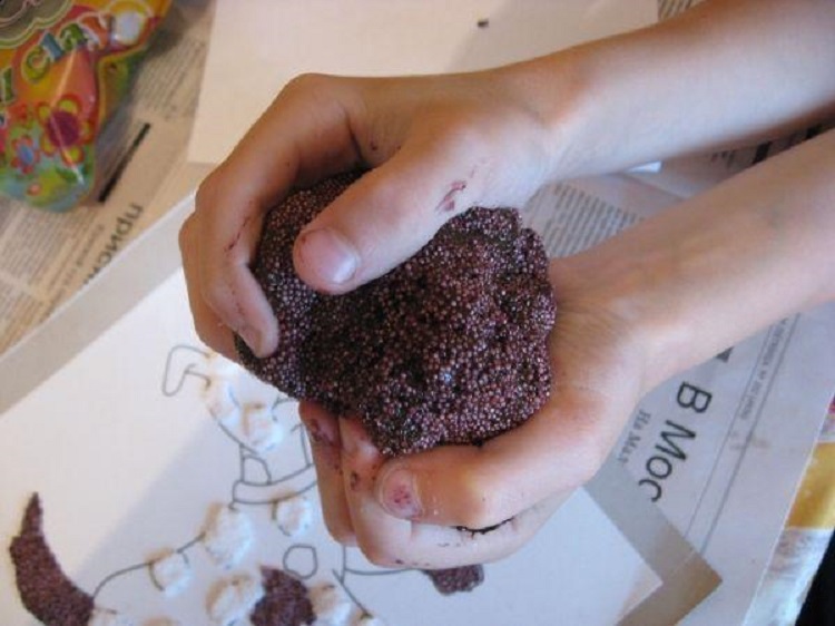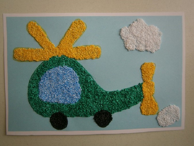 Малыш с большим удовольствием заполнит весь рисунок шариками из баночек. Позже они затвердеют, образовывая прекрасную картинку.