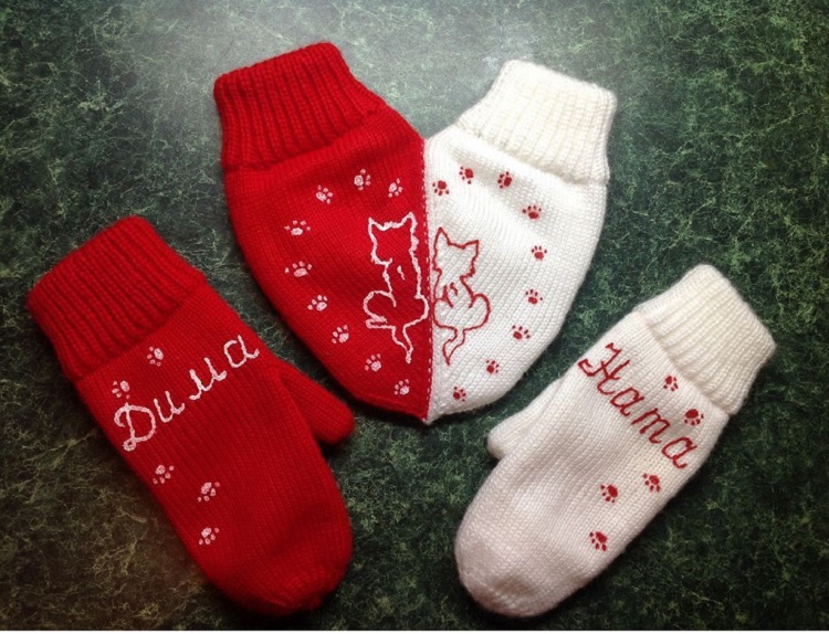 - Номер два. Две одинаковые пары для влюбленных, плюс одна общая варежка для совместных прогулок.