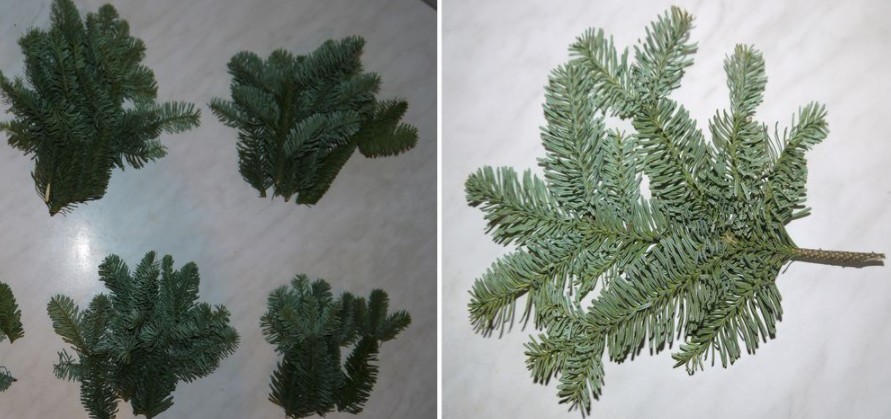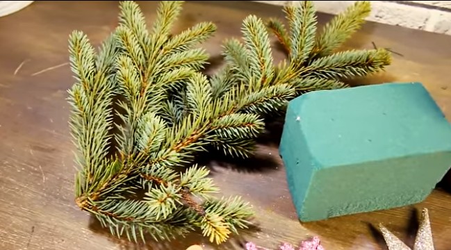 Зачистите нижнюю часть веток от иголок и втыкайте в оазис.